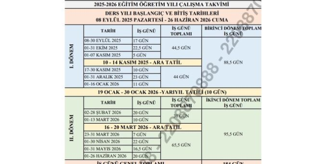 - Ara tatil bitiş tarihi: 14 Kasım Cuma