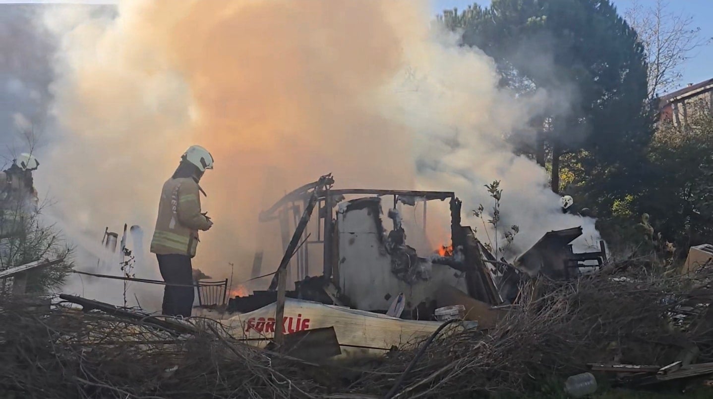 Yangın nedeniyle gecekondu tamamen kullanılamaz hale gelirken, bölgede yükselen yoğun duman gökyüzünü kapladı.